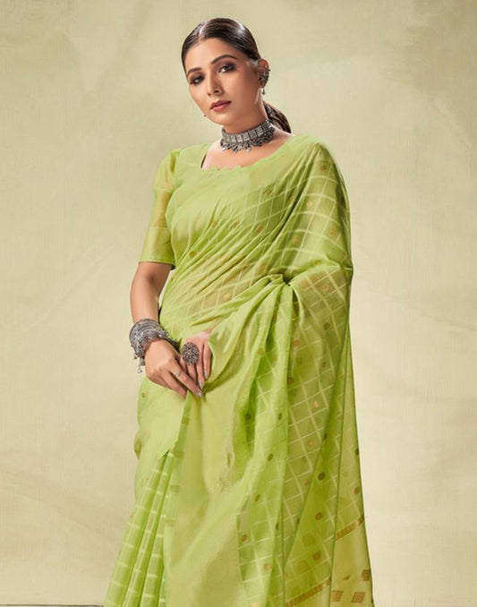 Pista Green Geometric Cotton Saree