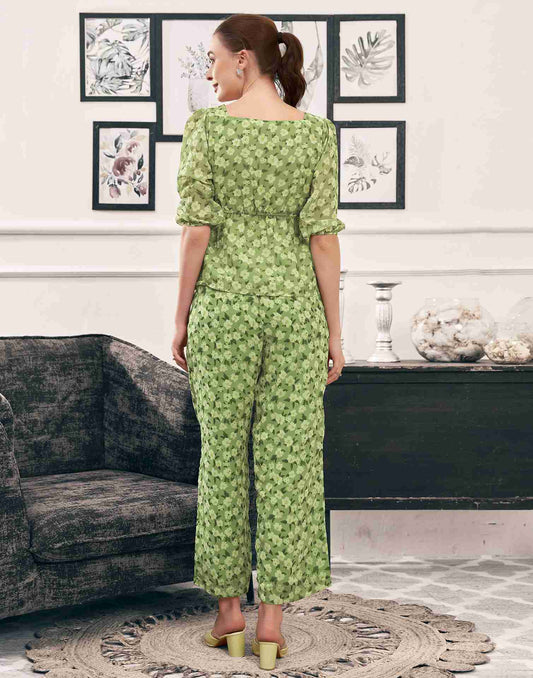 Pista Green Georgette Printed Co-ord Set