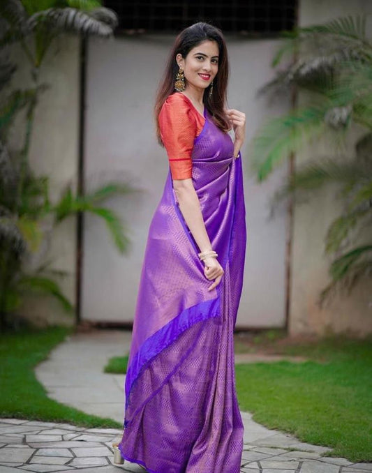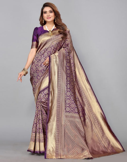 Purple Kanjivaram Handloom Weaving Silk Saree