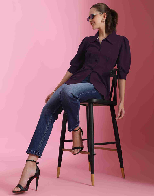 Regular price Rs. 509.00Regular priceUnit price / perRs. 0.00Sale price Rs. 509.00Purple Plain Lycra Shirt