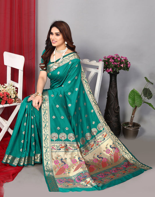 Rama Green Paithani Silk Saree