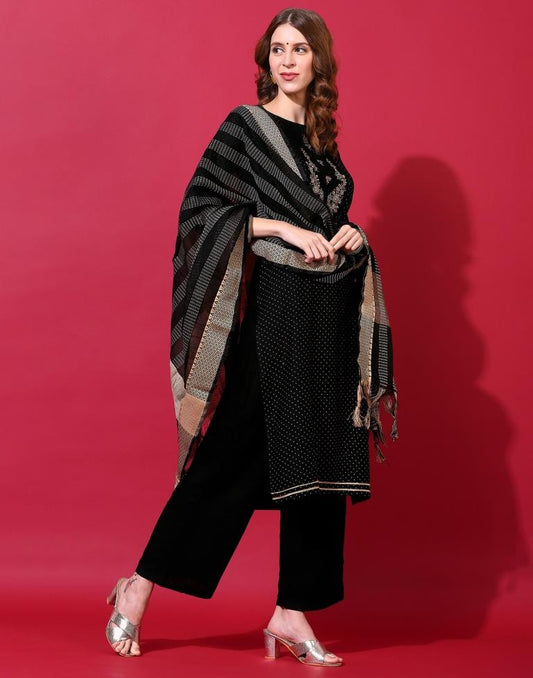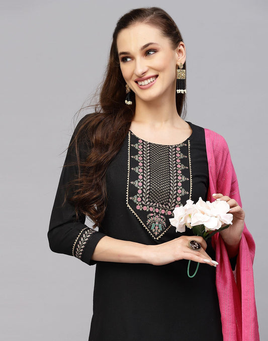 Regular price Rs. 929.00Regular priceUnit price / perRs. 0.00Sale price Rs. 929.00Black Kurti With Pant And Dupatta