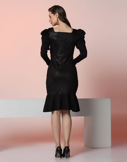 Regular price Rs. 629.00Regular priceUnit price / perRs. 0.00Sale price Rs. 629.00Black Lycra Frill Hem Dress