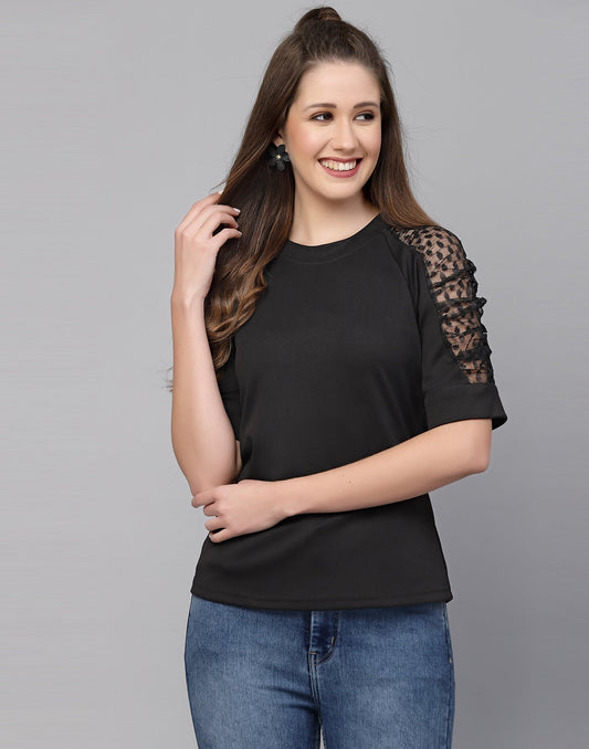 Regular price Rs. 409.00Regular priceUnit price / perRs. 0.00Sale price Rs. 409.00Black Lycra Balloon sleeve self design Top