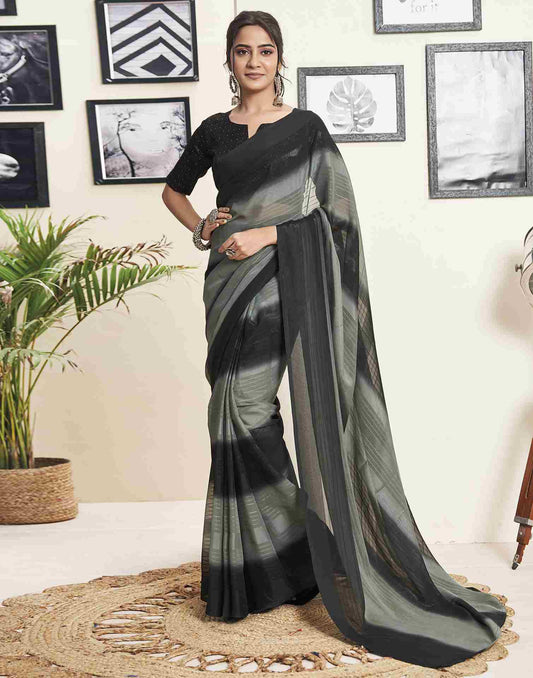 Ready To Wear Black Georgette Printed Plain Saree