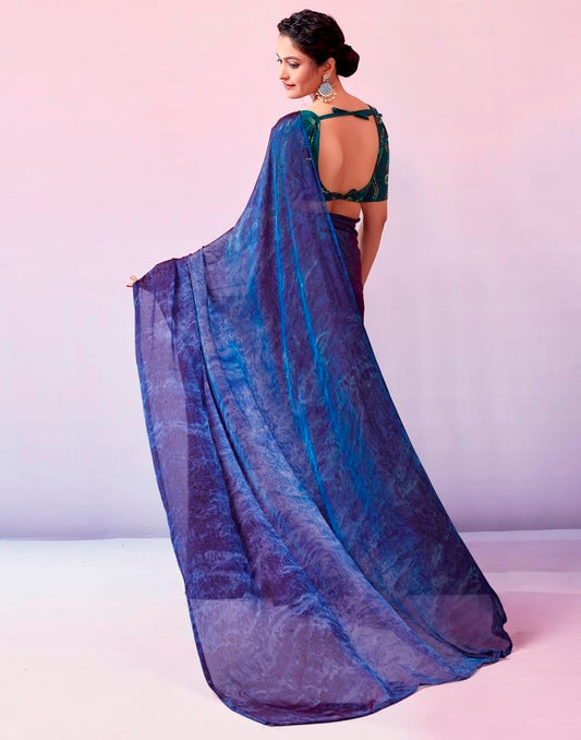 Ready to Wear Blue Chiffon Printed Saree