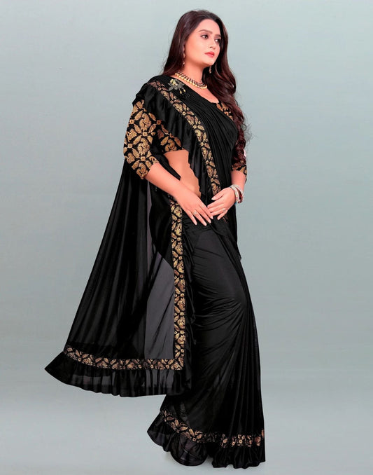 Ready to Wear Black Plain Saree