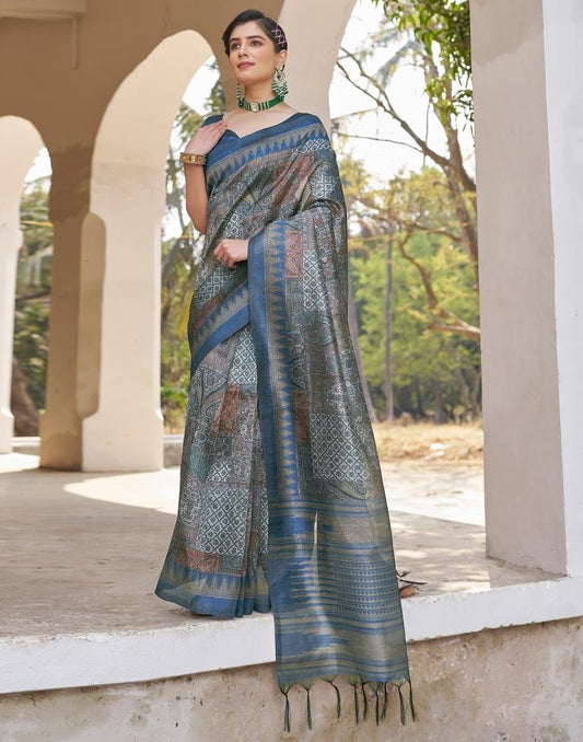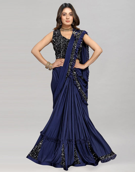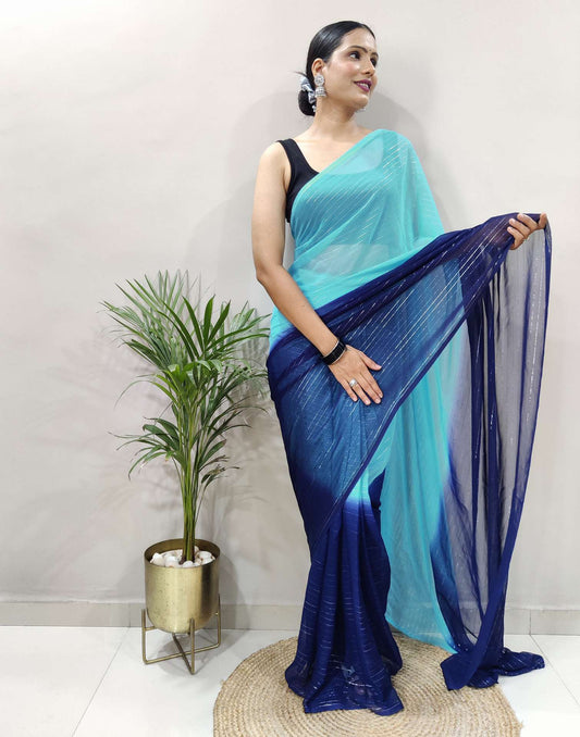 Ready to Wear Blue Wovern Zari Strip Georgette Saree