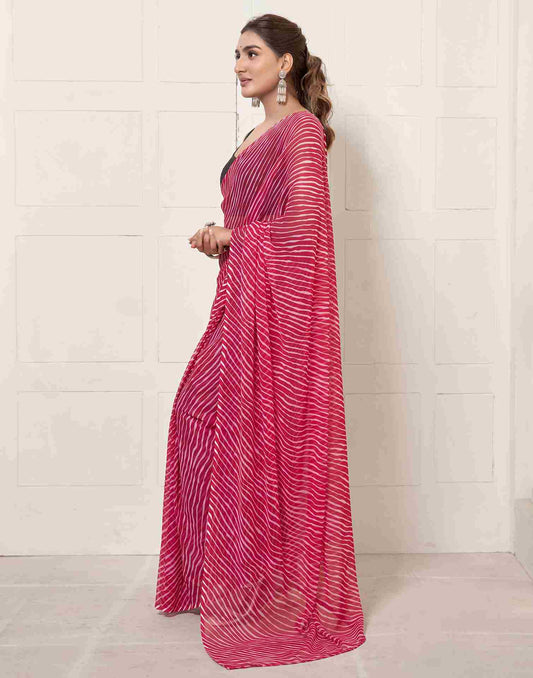 Ready To Wear Dark Pink Georgette Printed Leheriya Saree