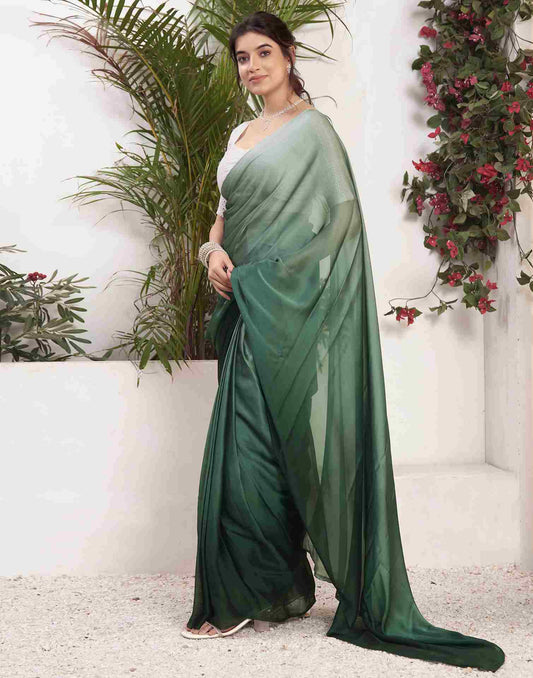 Ready To Wear Dark Green Georgette Plain Saree