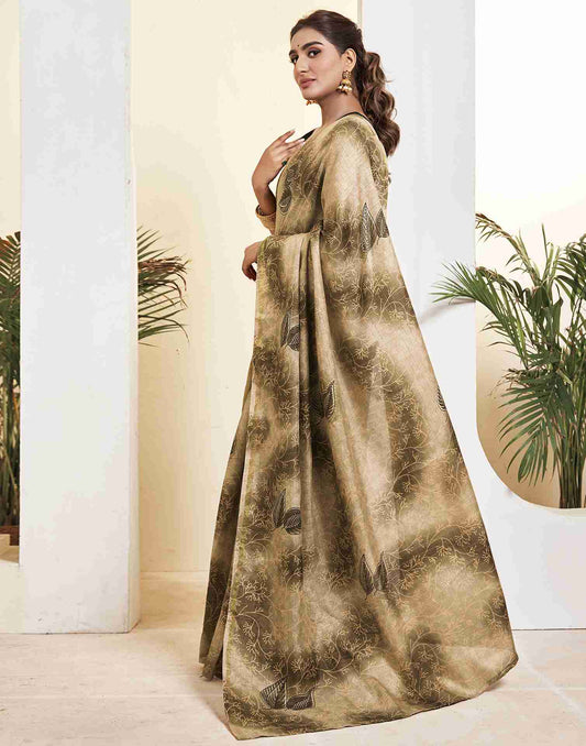 Ready To Wear Khaki Silk Printed Saree