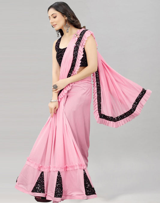 Ready to Wear Light Pink Chiffon Embroidery Saree