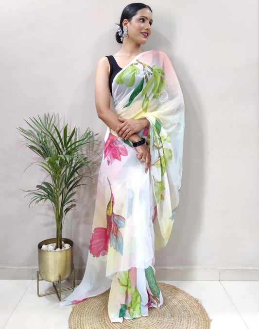 Ready to Wear Multicoloured Chiffon Printed Saree