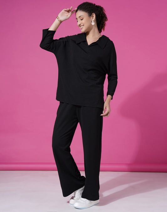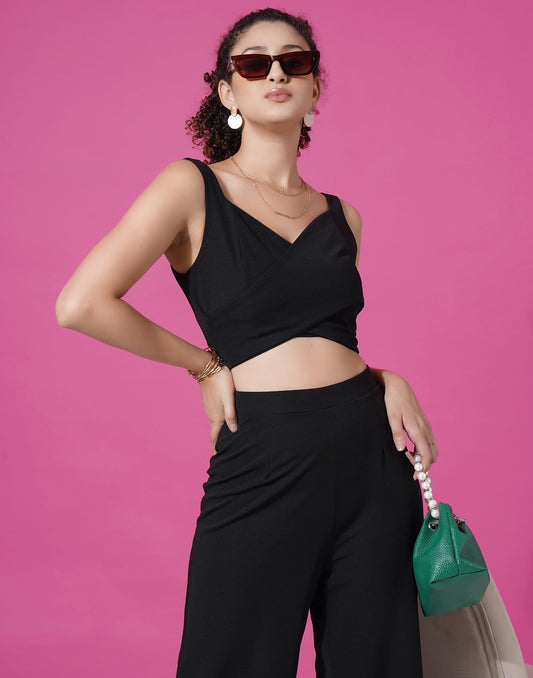 Black Lycra Plain Co-ord Set