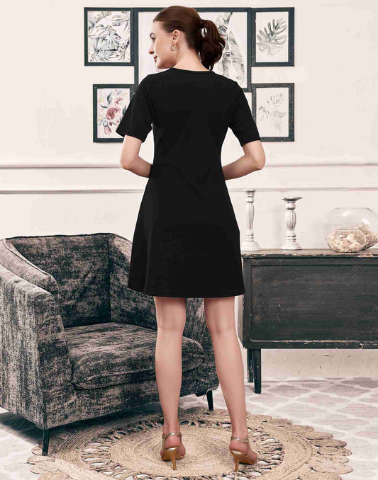 Black Lycra Plain A-Line Dress