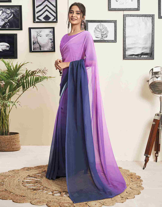 Ready to Wear Pastel Purple Woven Georgette Saree