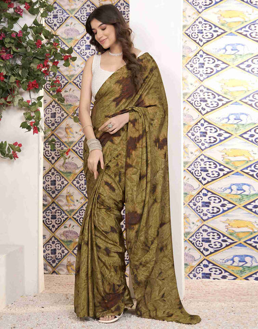Ready To Wear Peanut Brown Georgette Printed Saree