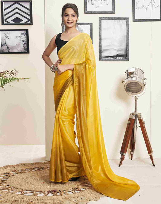 Ready to Wear Yellow Chiffon Plain Saree