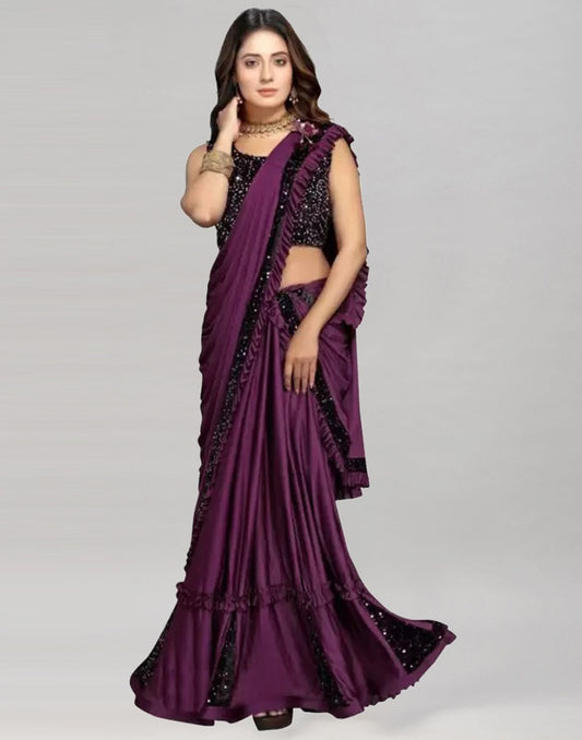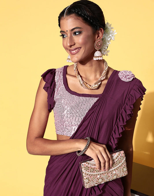 Ready to Wear Wine Lycra With Embellished Border Saree