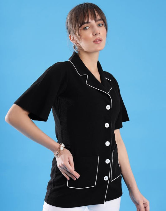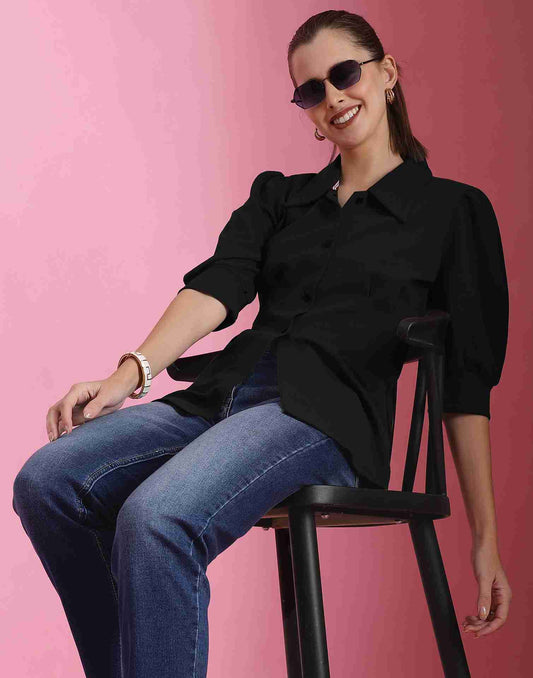 Regular price Rs. 499.00Regular priceUnit price / perRs. 0.00Sale price Rs. 499.00Black Lycra Plain Shirt Top