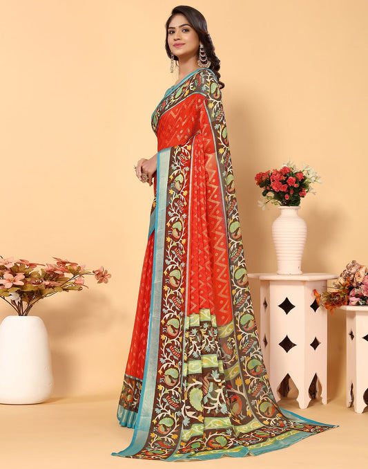 Red Brasso Printed Woven Saree