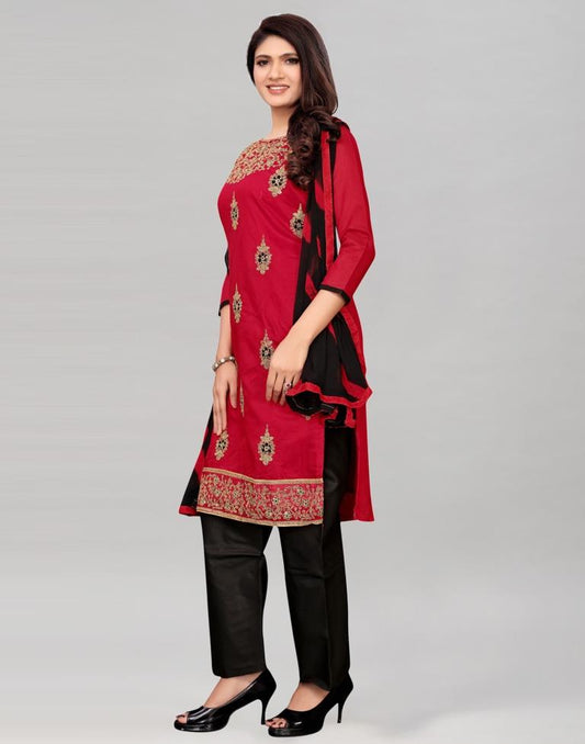 Red Chanderi Silk Embroidered Unstitched Salwar Suit