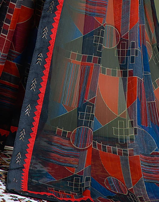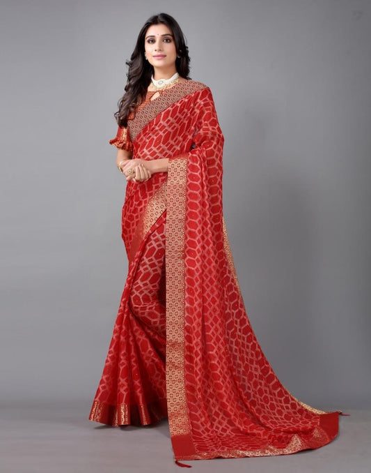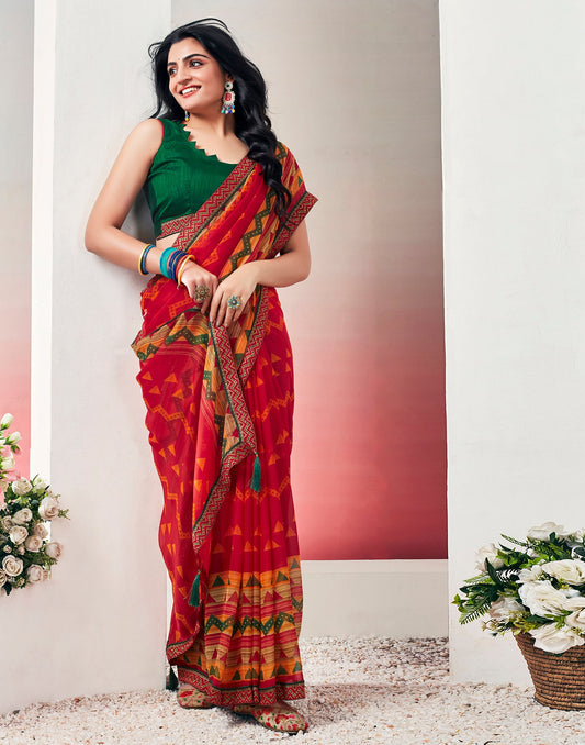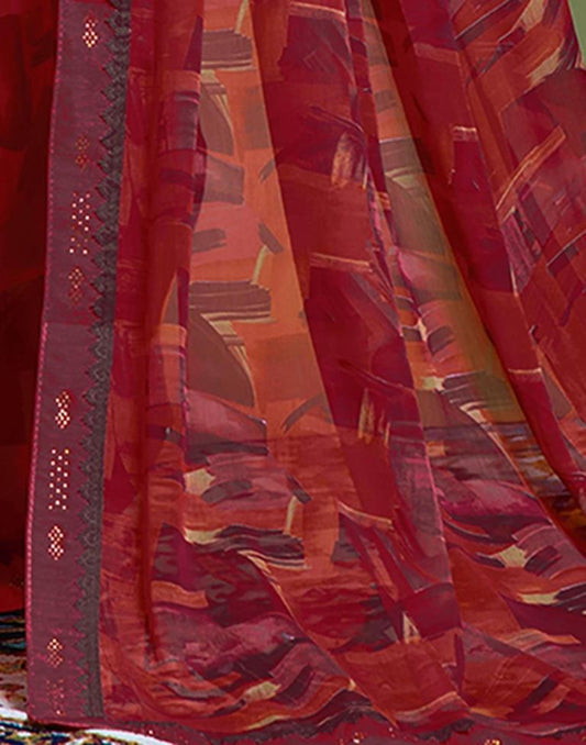 Red Chiffon Printed Saree