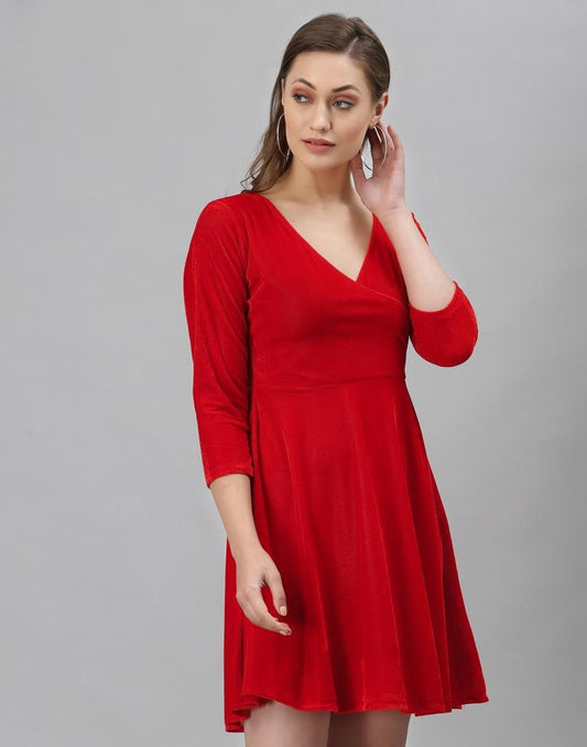 Regular price Rs. 449.00Regular priceUnit price / perRs. 0.00Sale price Rs. 449.00Red Coloured Velvet Lycra Plain Dress