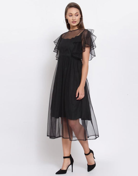 Regular price Rs. 519.00Regular priceUnit price / perRs. 0.00Sale price Rs. 519.00Black Net Flared sleeve Dress