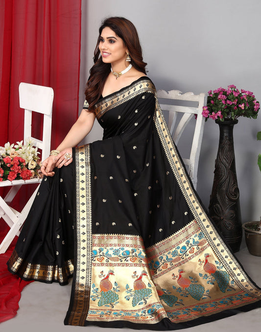 Black Paithani Silk Saree With Zari Weaving Work