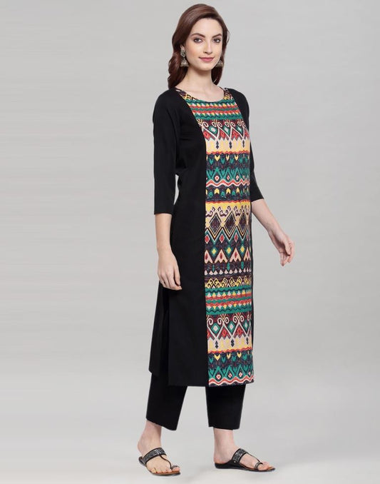 Black Panel Printed Kurti