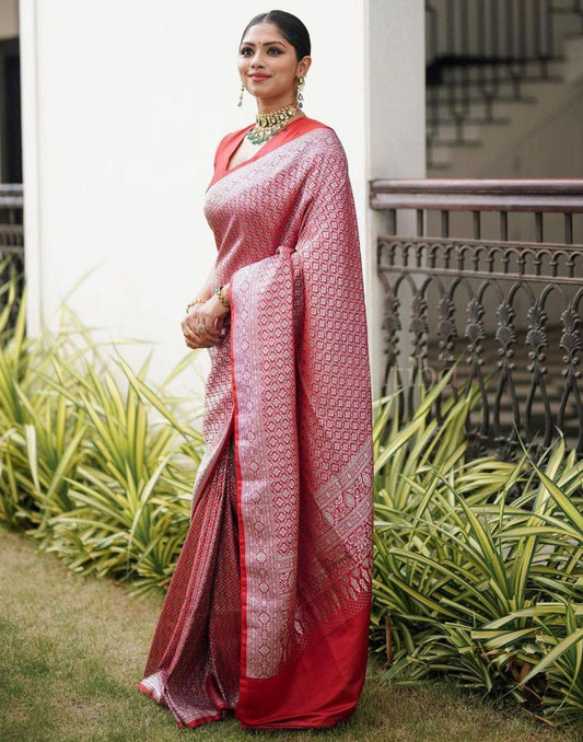 Red Jacquard Banarasi Silk Saree