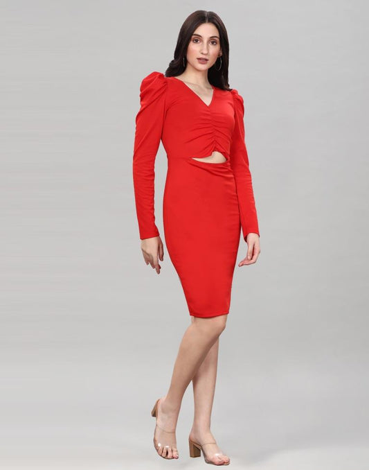 Regular price Rs. 399.00Regular priceUnit price / perRs. 0.00Sale price Rs. 399.00Red Puff Sleeve Bodycon Dress