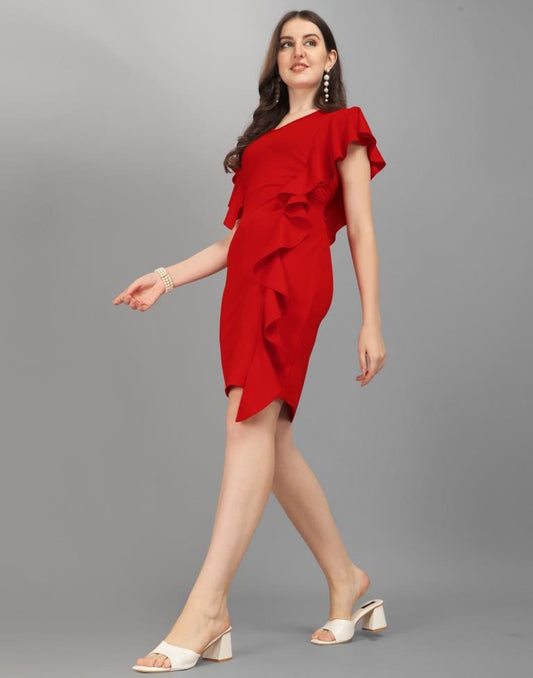 Regular price Rs. 439.00Regular priceUnit price / perRs. 0.00Sale price Rs. 439.00Red Rufflrd Bodycon Dress