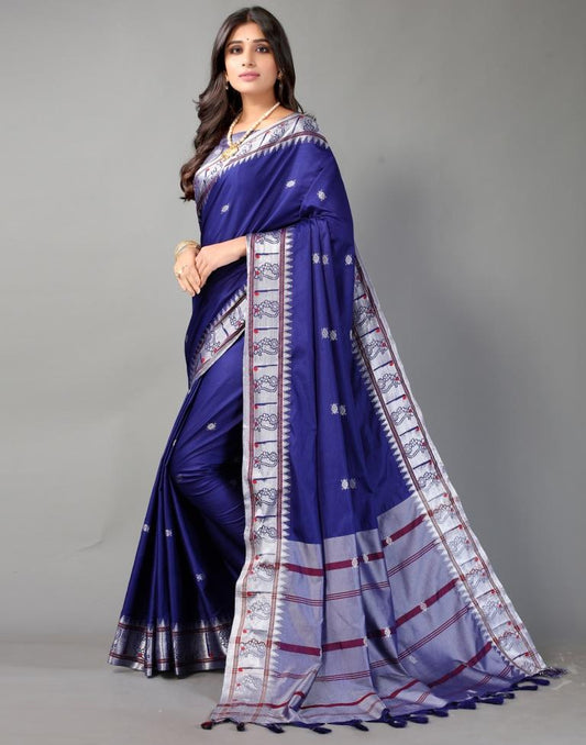 Royal Blue Multicoloured Chiffon Geometric Printed Saree