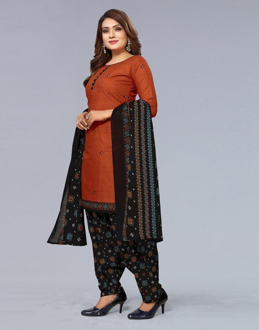 Rust Printed Cotton Unstitched Salwar Suit Material