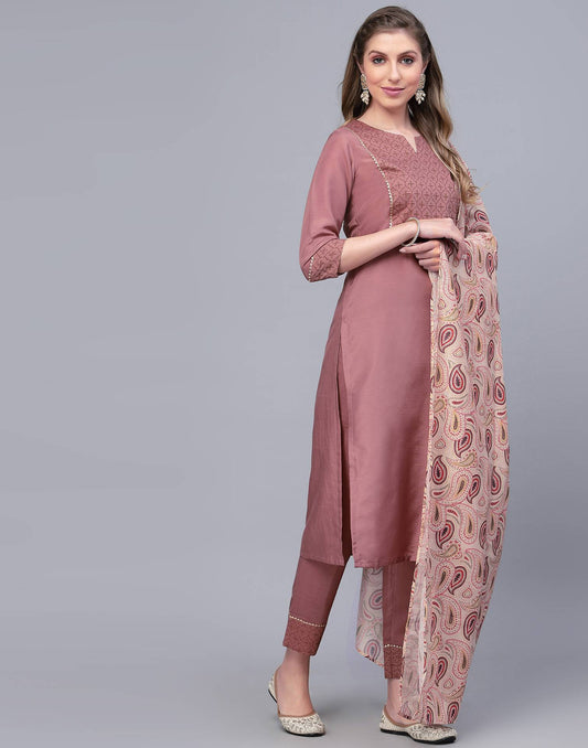 Regular price Rs. 999.00Regular priceUnit price / perRs. 0.00Sale price Rs. 999.00Rust Pink Printed Kurta with Pant and Dupatta