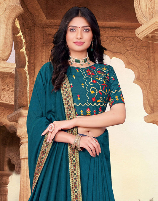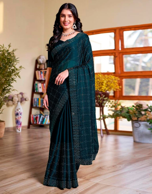 Sea Green Coloured Poly Cotton Printed Casual saree
