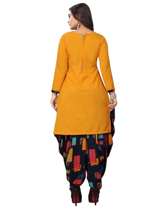 Sensuous Mustard Yellow Printed Unstitched Salwar Suit