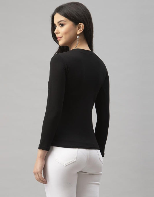 Sensuous Black Coloured Knitted Lycra Tops