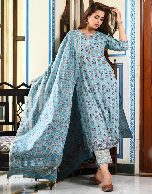 Sky Blue Digital Ped Kurta With Pant And Dupatta