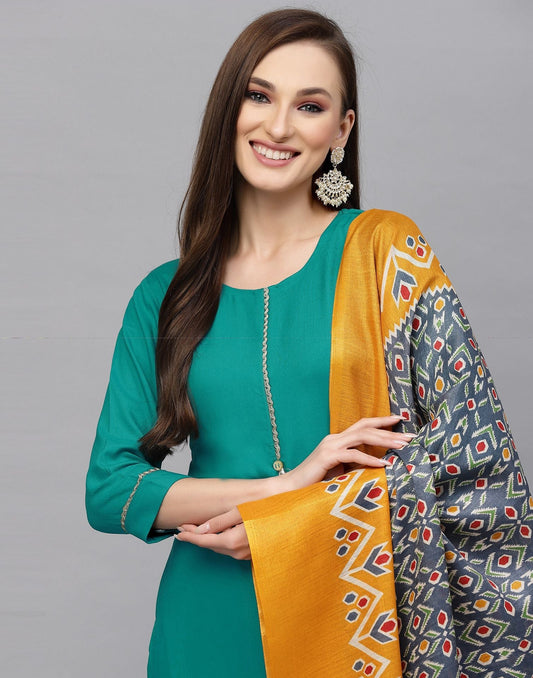 Sky Blue Plain Kurti With Pant And Dupatta