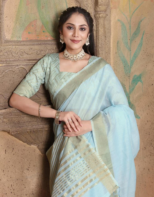Sky Blue Linen Self Woven Saree