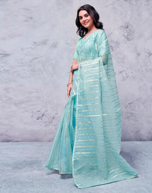 Sky Blue Organza Weaving Saree