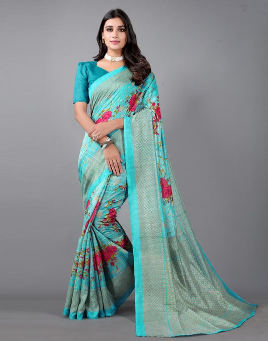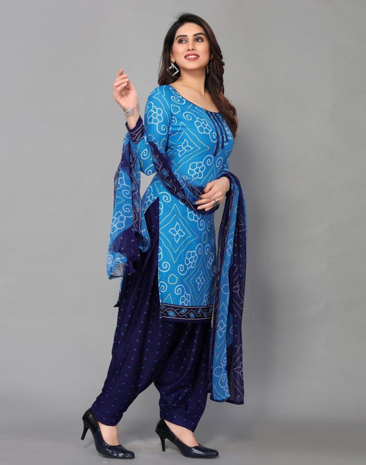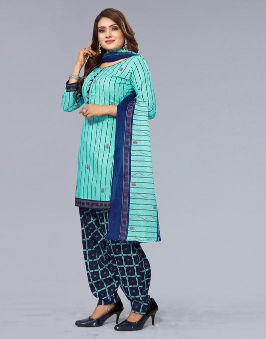 Sky Blue Printed Cotton Unstitched Salwar Suit Material