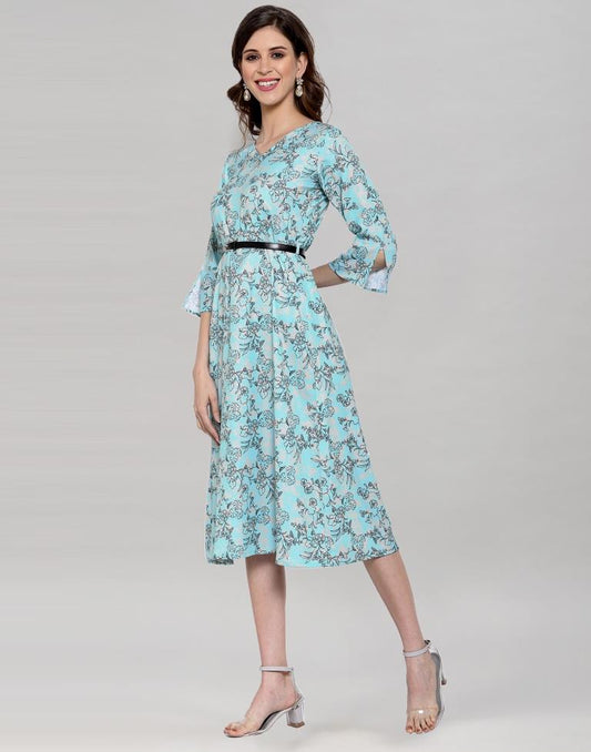Regular price Rs. 679.00Regular priceUnit price / perRs. 0.00Sale price Rs. 679.00Sky Blue Printed Flared Dress