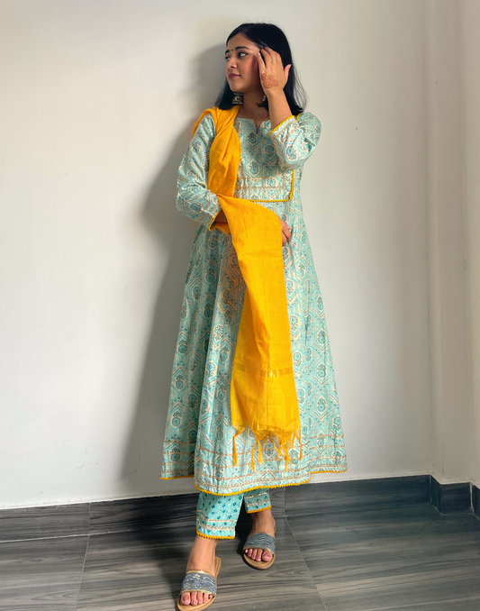 Regular price Rs. 1,099.00Regular priceUnit price / perRs. 0.00Sale price Rs. 1,099.00Sky Blue Printed Kurta with Pant and Dupatta