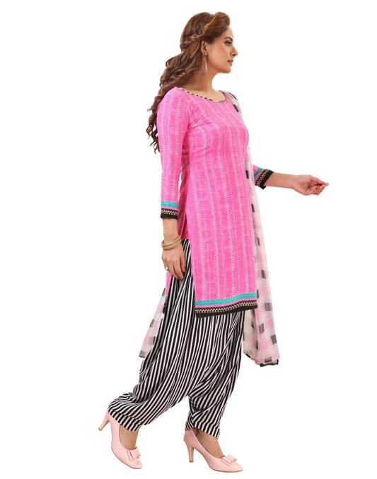 Sparkling Pink Printed Unstitched Salwar Suit