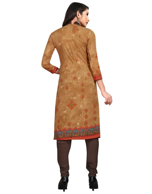 Sparkling Wood Brown Printed Unstitched Salwar Suit
