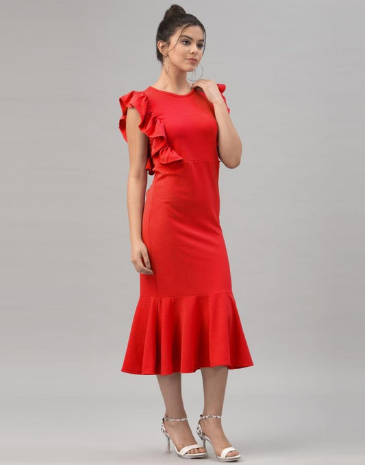 Sparkling Red Coloured Knitted Lycra Dress